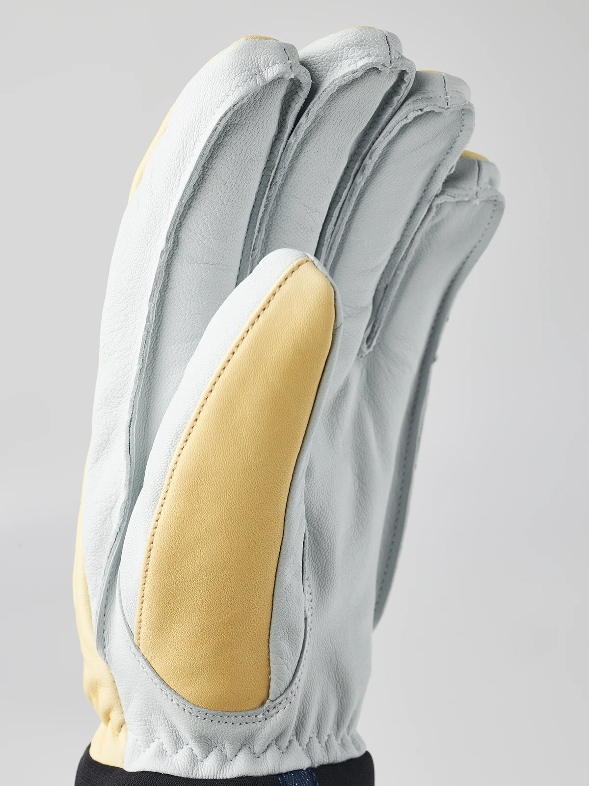 A short leather ski glove with detachable wool liner. Sewn in goatskin and cowhide leather for the best combination of durability and mobility. A hardwearing companion in the mountains with good pole grip, as comfortable on the groomed slopes in the morning as it is off piste, and with a timeless style that also works for everyday use.