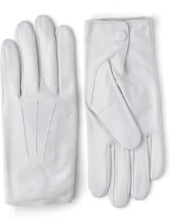 An unlined, evening dress and uniform glove in supple Italian lamb nappa. A timeless men’s design of the highest quality stitching and material. The cut is close to the hand with decorative stitching on the backhand. A slit with a leather-covered press stud at the inside wrist makes the glove easier to put on and take off.