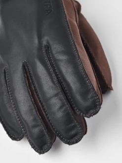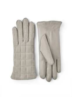 A neat women’s leather glove with beautifully worked details. The matt texture of the quilted suede on the backhand contrasts with the light sheen of the lamb nappa on the palm. The glove is close-fitting with an elastic seam at the inside wrist. A stylish fashion accessory that is suitable for both everyday and more formal use, and the knitted lining provides warmth in the autumn and on mild winter days.